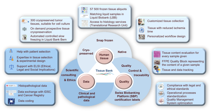 Die TBB ist eine aktive Core Facility, die grössten Wert auf die Entwicklung neuer Verfahren und Methoden legt, um den Anforderungen der Forscher gerecht zu werden. In den letzten Jahren haben wir Wissenschaftlern nicht nur gefrorenes und natives Material zur Verfügung gestellt, sondern auch das Portfolio passender Sammlungen erweitert, Dies setzt eine starke abteilungs-und institutionsübergreifende Zusammenarbeit voraus. Wir arbeiten eng mit der Abteilung für klinische Pathologie und den Kliniken zusammen, wo das Biobankgewebe bereits im Operationssaal verarbeitet wird, um für bestimmte Studien die erforderliche maximale Gewebequalität zu geähren. Die Qualität der RNA dieses Gewebes ist ausgezeichnet, mit RNA-Integritätszahlen (RIN) von 10 für die meisten der analysierten Proben.