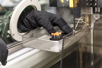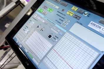 With the ASKION - C-line® system the BBS offers storage capacity at <-150°C. This is one of the first systems enabling fully-automated sample introduction, sorting, and sample removal at such low temperatures. Samples are stored in stainless steel barrels in the gas phase of liquid nitrogen and the sample handling takes place at <-100°C with a fully-automated picker. The picking process is so fast, that the deep-frozen samples do not reach -130°C during sample handling. In total three ASKION - C-line® systems provide storage capacity for more than 100’000 cryotubes.