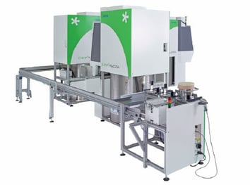 The systems are interconnected by an external rail system, which transports the nitrogen-cooled sample containers for automated sample introduction and sample removal without interrupting the cooling chain.